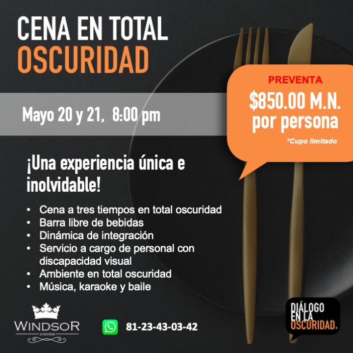 CENA EN TOTAL OSCURIDAD 20 Y 21 MAYO 2026